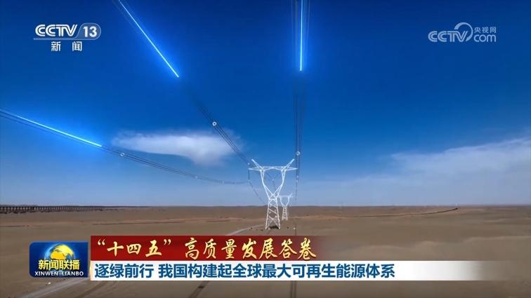央视网消息(新闻联播):荒无人烟的沙漠、戈壁与荒滩变身巨大的发电场,横跨千里,清洁能源毫秒之间东西“闪送”。“十四五”以来,中国逐“绿”而行,在广袤山河间铺展能源绿色变革的壮阔图景,神州大地上能源生产与消费格局正在改写。