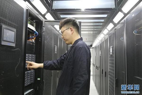 陕西沣东新城智能计算中心工作人员对设备进行日常检查。新华网