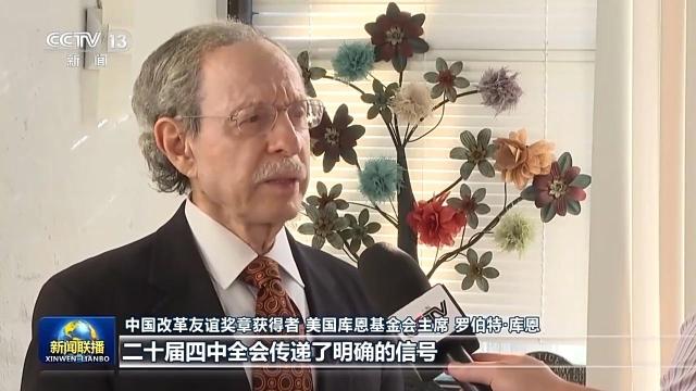 中国改革友谊奖章获得者 美国库恩基金会主席 罗伯特·库恩:二十届四中全会传递了明确的信号,在习近平主席的领导下,科技创新和绿色发展将是中国未来经济发展的重要方面。有了科学的规划和政策导向,中国各领域都能够实现稳步发展,而中国的发展也将惠及世界。
