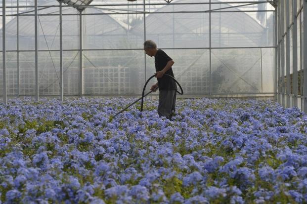 11月2日,位于海宁市盐官镇桃园村的“塔莎的花园”大棚里,员工正在进行花卉养护作业。新华社记者刘力航 摄
