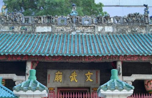 11月12日,在香港的文武庙屋顶上,立着鳌鱼的雕塑。新华社记者 吴鲁 摄
