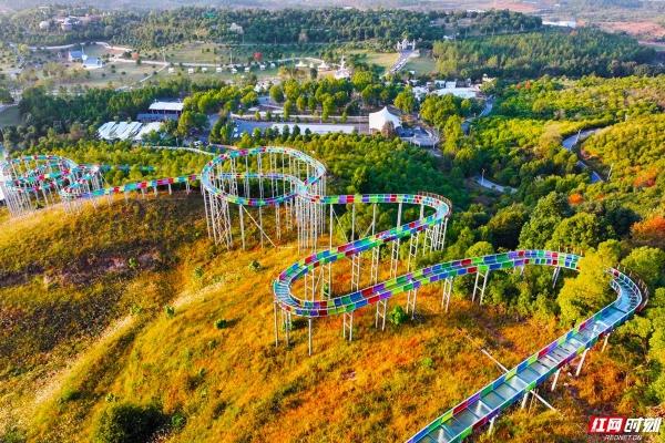 高空漂流、七彩滑道等网红项目嵌于山林之间。