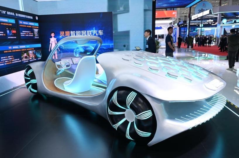 2025年4月29日,在第八届数字中国建设峰会现场体验区拍摄的灵犀智能网联汽车。新华社记者 林善传 摄