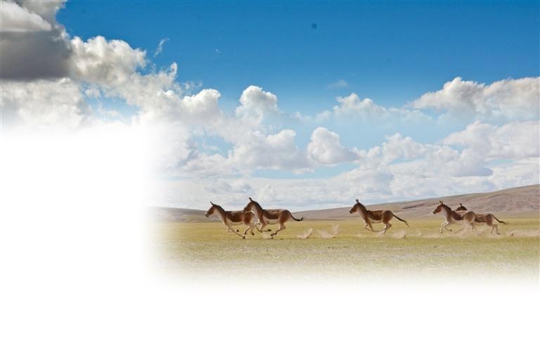 羌塘国家级自然保护区内尽情奔跑的藏野驴。记者 汪纯 摄