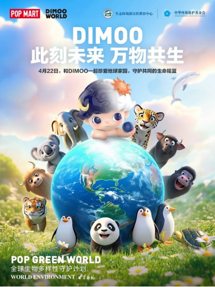 DIMOO是泡泡玛特旗下经典IP之一,具有强大的全球影响力,其IP世界观中也承载着生物多样性、人与自然和谐共生的价值和意义。DIMOO的艺术家AYAN在关注自然界的生物多样性的同时也将这样的想法融入了作品中,自DIMOO诞生以来,就推出了如水族馆、森林之夜、动物王国等与动植物相关的系列,传递人与自然友好相处的理念,不仅深受粉丝的喜爱,也潜移默化地培育了粉丝的环保意识。