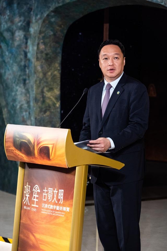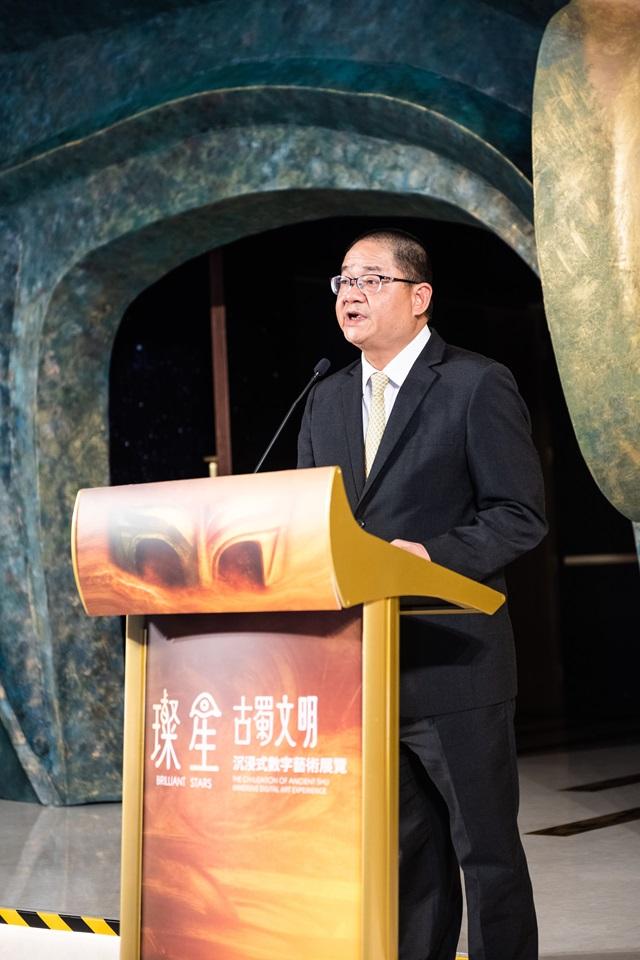 吴志良表示,古蜀文明距今最远已有数千年的历史,它是中华文明多元一体格局中不可或缺的瑰丽篇章。三星堆文化和金沙文化是古蜀文明的佼佼者,本次“璨星——古蜀文明沉浸式数字艺术展览”是对古蜀先民的致敬,更是对“何以中国”的当代回答:真正的文明传承,从不囿于复古怀旧,而在于让传统基因与时代技术共振新生。这次展览是一次科技与文明交织的盛宴,展览当中以12K超高清影像、沉浸式交互、微距数字译码等前沿科技,让沉睡的文明苏醒,让断裂的纹饰重新连接。这将不仅仅是一场展览,更是一场文明基因的当代觉醒。让我们从澳门出发,让中华文明与西方文明再次对话,融汇中西文明之河。