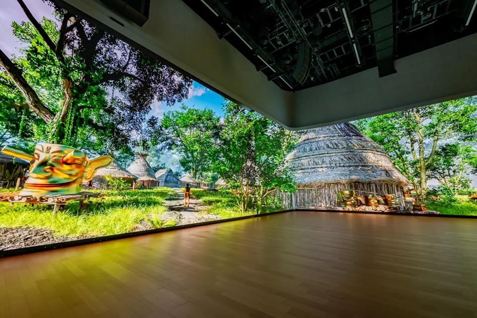 本次展览得到了澳门特区政府文化局、三星堆博物馆、金沙遗址博物馆等文博机构的大力支持,各方携手以数字科技为纽带,共同构筑起跨越时空的文明对话桥梁。展览选址美高梅全新多功能场地“百宝箱”,这也是该场地的首个主题展览。展厅活用三面合计约500平方米的超高清LED显示屏,将古蜀自然生态、生活环境、先民活动等场景进行数字化动态呈现,打造令人震撼的沉浸式体验。同时,以高清微距影像技术,让观众得以近距离欣赏珍贵文物的精美细节,感受古蜀文明的艺术与工艺之美。