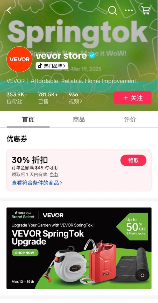 Vevor的TikTok Shop主页