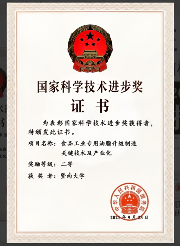 汪勇教授甘油二酯科研成果荣获国家科学技术进步奖