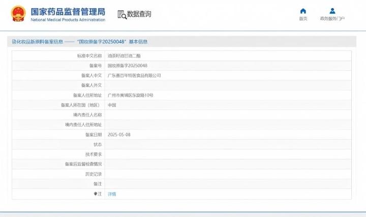 而在护肤品领域甘油二酯同样有着巨大的发展潜力。相比传统油脂,油茶籽油甘油二酯分子结构更小,具有优越的渗透性,能显著提升活性成分的渗透效率,并带来更清爽、更舒适的体验,满足现代消费者对“轻盈肤感”的追求。今年5月份,善百年“油茶籽油甘油二酯”通过新原料备案, 未来将大力推进甘油二酯在护肤品领域的市场应用,打造护肤品领域的“DAG超级载体”。