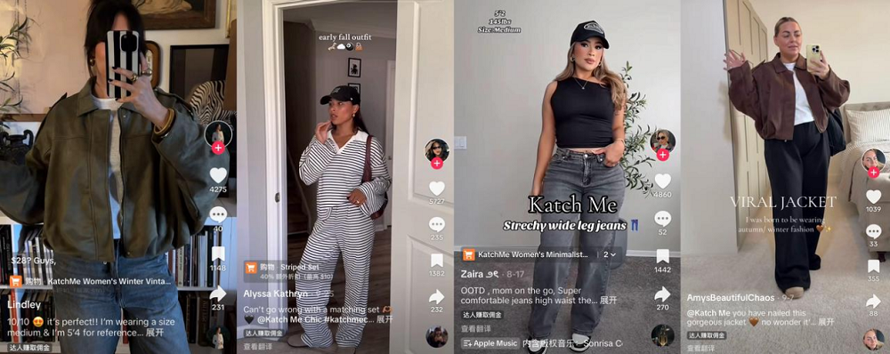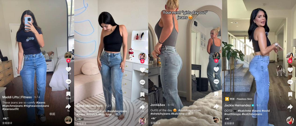 图:TikTok上,不同身材、风格的达人分享Katch Me牛仔裤。