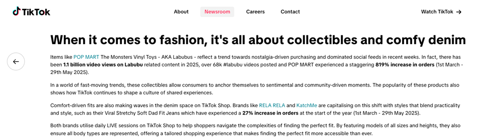 图:2025年7月TikTok发布的首份英国购物报告中,Katch Me牛仔裤被收录。