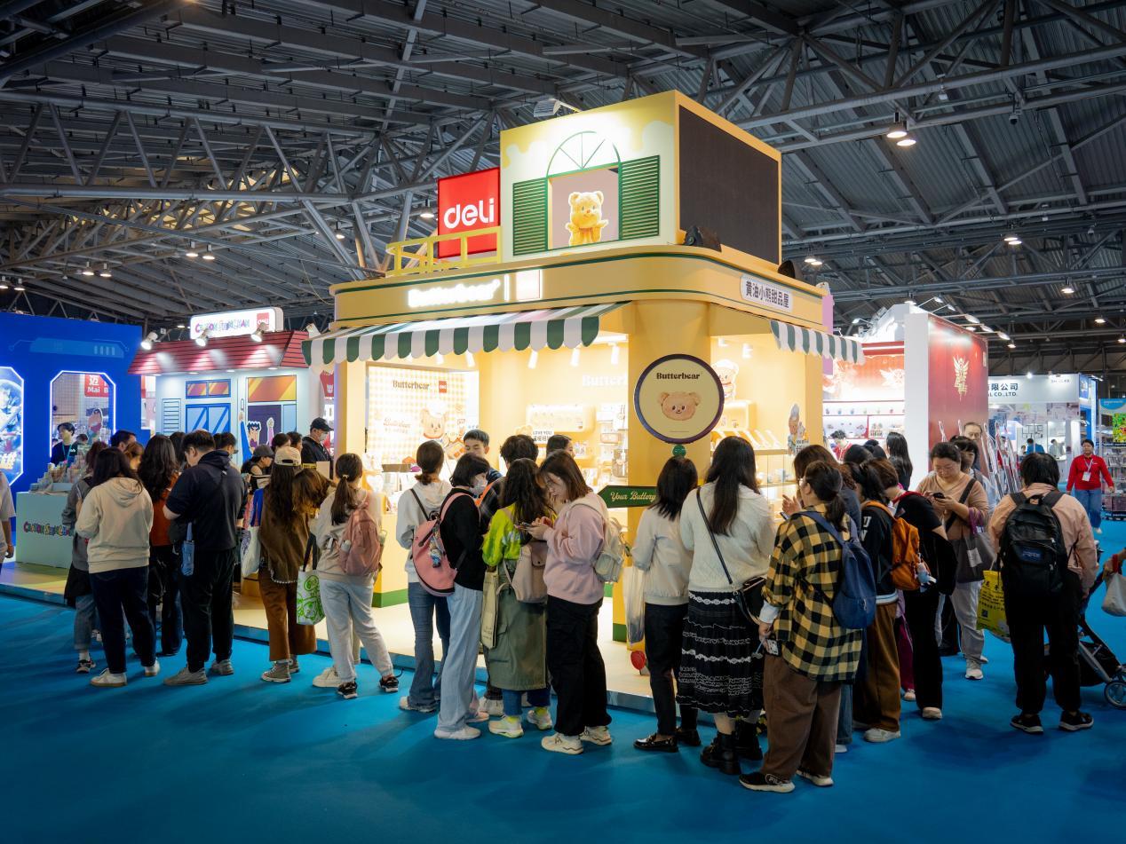 展会现场人声鼎沸,得力展区独特的设计吸引了众多参观者的关注。展区里,联名产品琳琅满目,设计独特且充满创意。参与体验的消费者们在展台前流连忘返,纷纷表示这些产品外观精美,看着就让人心情愉悦,使用体验十分出色,迫不及待想要入手。得力与黄油小熊IP联名搭建的黄油小熊甜品屋,上百款萌力十足的联名产品更是圈粉无数,各种可爱的毛绒包、本本、冰箱贴等俘获了不少芳心,现场人气爆棚。有消费者现场激动直呼:终于等到这只泰国顶流小熊的联名周边了。