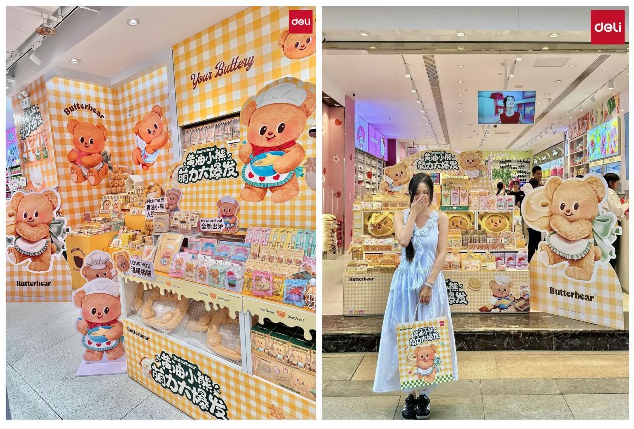 当前借力IP跨界合作,一方面,得力的品类在创意和设计中,从文具、包袋到杂货、周边等,得到持续拓展。另一方面,依托不同IP的影响力和粉丝基础,品牌实现了在更多兴趣圈层的破圈与传播。再者,丰富的IP为得力的营销增添了新场景,拓宽了渠道。今年得力黄油小熊IP系列百余款产品于国庆期间入驻1000家名创优品门店,同时也在酷乐潮玩、凯蓝、番茄口袋等零售杂货渠道陆续上架。不止于此,得力也将进驻商超网红店如胖东来等,成功打开商圈零售国内新渠道。未来,得力将把在国内IP文创产品及营销合作的成功玩法带到海外市场,携手黄油小熊、汪汪队立大功、海绵宝宝、海贼王等一众IP在海外市场乘风破浪,不断探索新的文创赛道,为得力海外市场注入发展新动力。