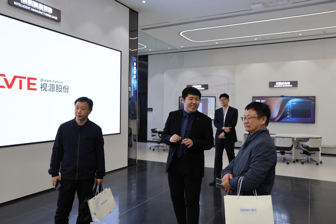 此外,嘉宾团一行进入展厅进行实地参观,在希沃团队的引导下,从“1+N”品牌陈列区、电子部件区、算力设备区、智能硬件区全方位纵览视源业态布局,全面了解企业发展现状和产品成果。值得一提的是,这其中既有教育领域的突破,又不乏企业服务、智能制造和智慧城市领域的深耕,让众人近距离领略了希沃的硬核技术本色。
