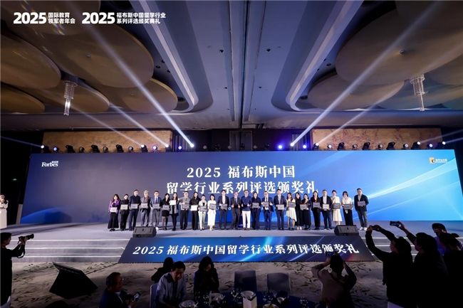 当然我们也很幸运,我们的努力受到了行业认可,在2024年末先后获得新浪&微博教育颁发的“2024年度国际教育领导力品牌”、央广网教育颁发的“2024年度·影响力留学服务品牌”权威奖项。也很感谢此次福布斯授予我们“留学出国服务卓越品牌”奖项,我们定会不忘初心、继续砥砺前行。