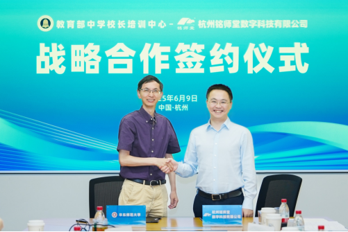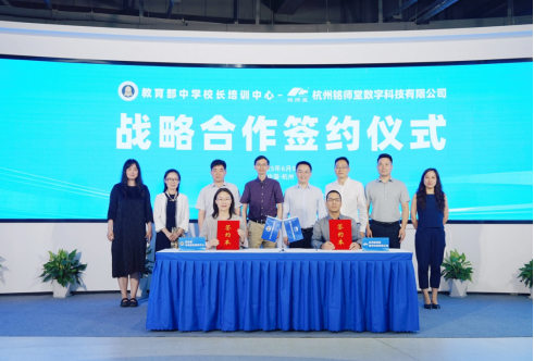 6月9日,教育部中学校长培训中心与杭州铭师堂数字科技发展有限公司在杭州铭师堂总部正式签订战略合作协议,并共同揭牌成立“县中振兴研究院”。