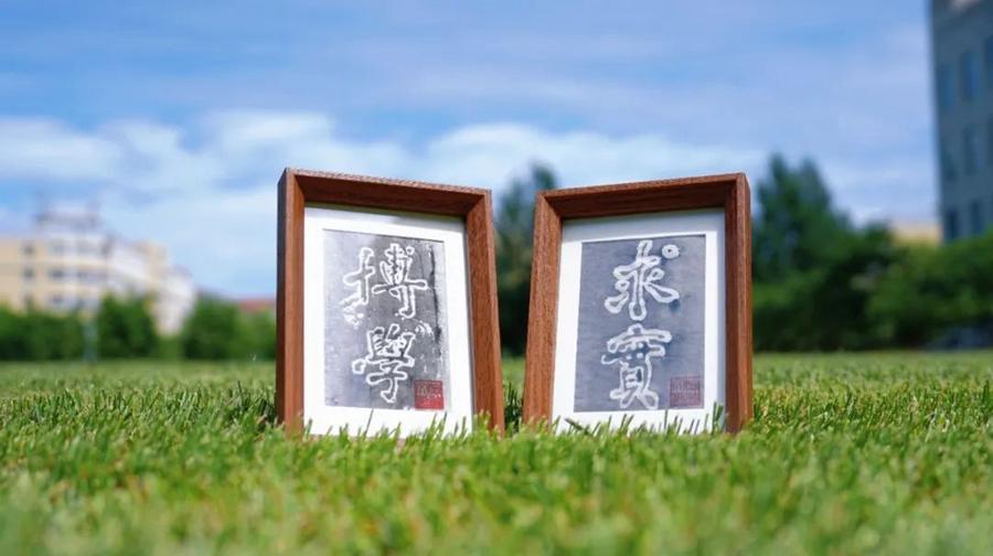 在新生们收到的礼盒里,有一幅特别的冰版画,它采用松花江天然冰材制作,通过哈尔滨石油学院自主研发的智能拓印版画机,在冰块上精准雕刻出纹理。