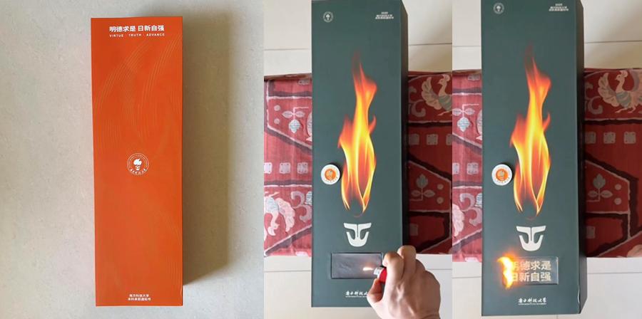 不过,招生办也发出过提醒:通知书虽然是碳纤维制成的,但表面用于印花纹和通知书内容部分的材料是怕烧的,测评千万注意安全!