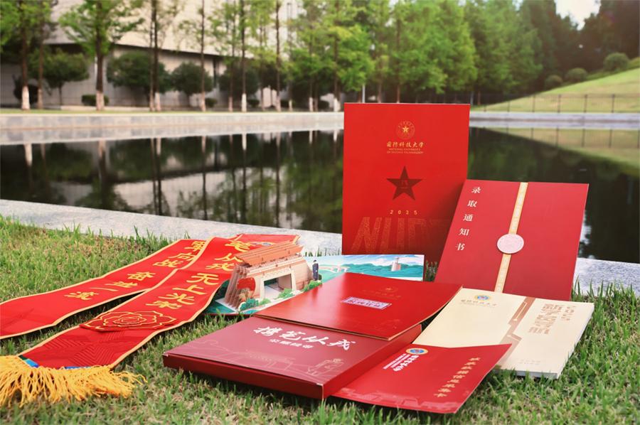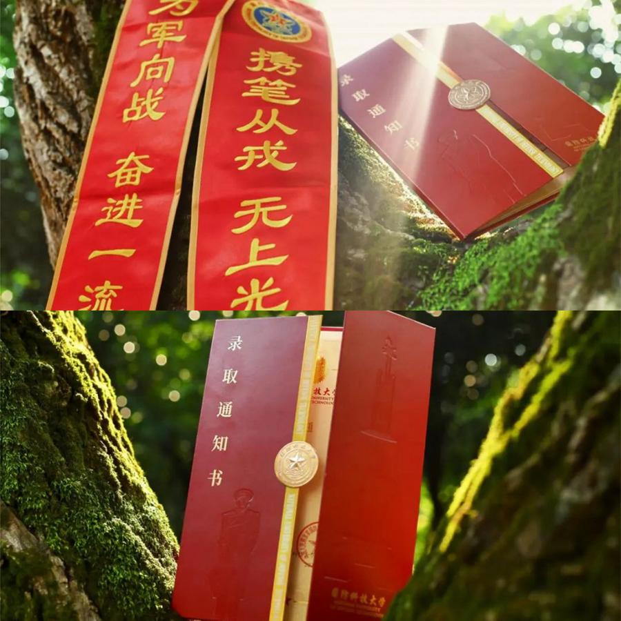 首先看到的,是一扇红彤彤“荣耀大门”,中央对开设计的通知书就像张开一个大大的拥抱,内页底纹精心绘制学校重大历史时刻与标志性国防科研成果,翻开它,就是在触摸国防科大辉煌的历史。