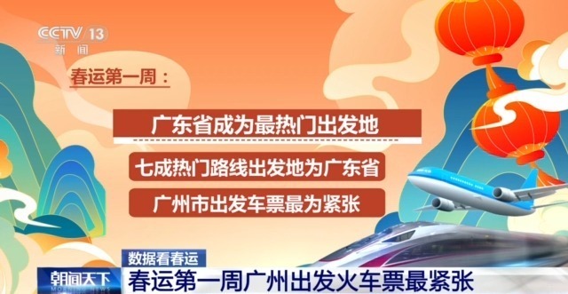 临近春节,这几天的火车票越来越紧张。综合分析过去一周候补票热门路线的出发地和目的地,我们发现广东是最热门的出发地,有七成热门路线的出发地为广东,其中,广州出发的车票最为紧张。