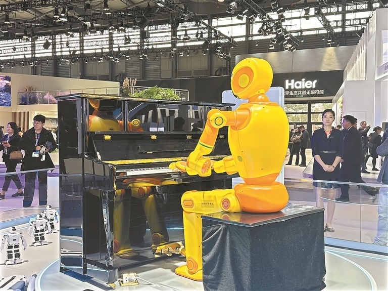 “这款能跑会动的人形机器人不仅具有针对老人、孩子的陪伴功能,还能在发现家里地面脏了之后,自动遥控扫地机器人进行清洁……”在海尔家庭机器人展台,讲解员告诉记者,对于AI+家电发展来说,家电企业已掌握了大量真实的用户数据,未来可移动、具备AI感知等功能的人形机器人将成为智慧家庭的“管家”。