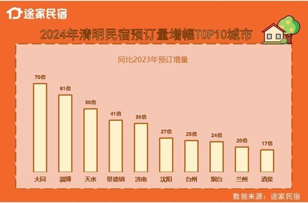 有天水房东表示,自家民宿3月中旬开始火了起来,同比往年预订增三四成,周末都满房。除了天水外,这个清明,小城旅游集体爆发。从平台预订增速看,大同、淄博、天水领衔,预订量同比2023年增超50倍。