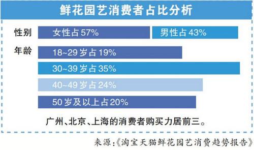 热植“热”的背后,是当代年轻人愿意花钱对情绪价值买单。另外一位园艺人吴家凡告诉记者,在园艺人眼里,如今鲜花园艺市场发展最有生命力的细分赛道,是年轻人主导的“新园艺”绿植。淘宝天猫最新发布的《鲜花园艺消费趋势报告》显示,2024年前三个月,有超一亿用户购买了鲜花绿植。其中,蔓绿绒、白锦龟背竹等热植正占据都市一族的日常生活,销量翻了接近两倍。“越来越多人将植物视作情绪载体,在电商平台选一把鲜花挑一棵绿植,不仅是当代家装的重要元素,年轻人更通过养花养草来治愈自己。”报告显示,在我国家庭养花者中,年轻人比例最高。从消费者人群画像来看,30-49岁青壮年群体占据超六成比例。