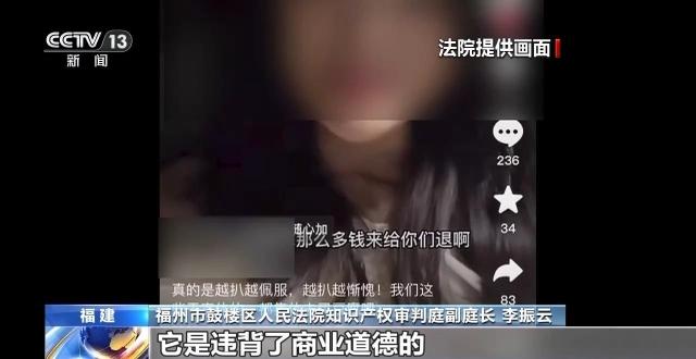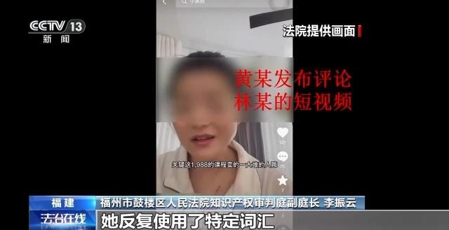 福州市鼓楼区人民法院知识产权审判庭副庭长 李振云:用了割韭菜、智商税,还有敛财工具,并且暗示林某的行为要进去“踩缝纫机”。这些用语在网络环境下都具有贬义,暗指林某的行为有构成犯罪的嫌疑,也导致了林某她的商业的商誉受到了影响。