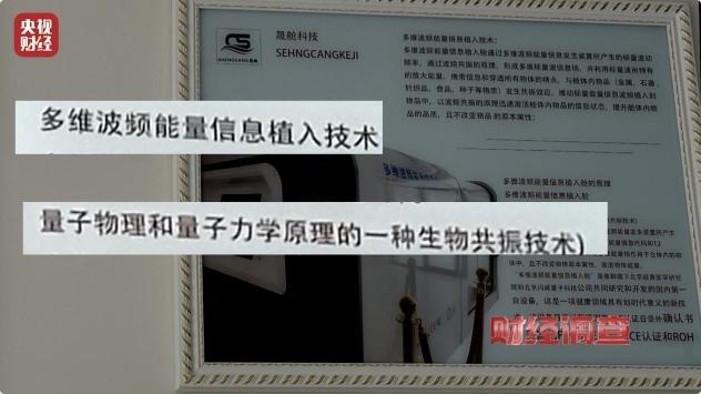 王经理明确表示,公司的主营业务就是为农作物种子进行量子赋能,门口这台类似太空舱的设备名叫“多维波频能量信息植入舱”,种子就是通过这台设备进行赋能的。记者看到,设备说明上写着“多维波频能量信息植入技术是量子物理和量子力学原理的一种生物共振技术”。