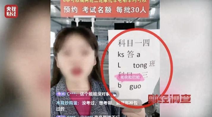 在网络直播间里,店家为自己产品开出的价格在3000元左右,主播还特意用纸板展示了这样的宣传语:“科目一四ks答a”“科目二三b guo”。这些字样背后又暗藏着什么样的玄机?