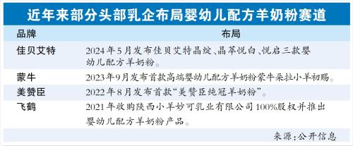 记者梳理行业信息获悉,近年来,国内外大量头部乳企如伊利、蒙牛、飞鹤、君乐宝、健合、美赞臣、达能、惠氏等相继布局婴幼儿配方羊奶粉赛道。从市场集中度来看,当前婴幼儿配方羊奶粉处于“一超多强”局面,中国婴幼儿配方奶粉正向“牛羊并举”局面迈进。