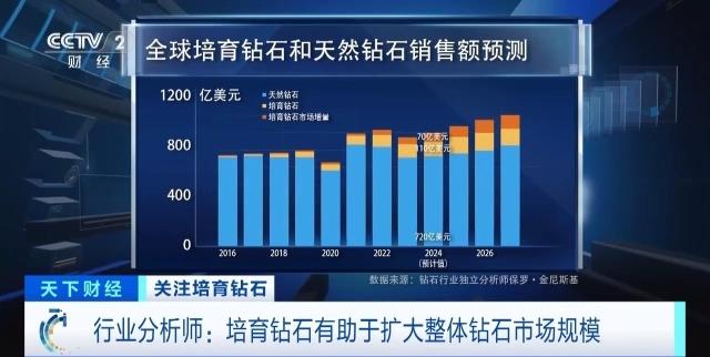 钻石行业独立分析师保罗·金尼斯基预计,2024年全球培育钻石的销售额将达到180亿美元,其中有70亿美元是对整个市场的增量,而到了2026年,预计培育钻石还会给整体市场带来100亿美元的增量。