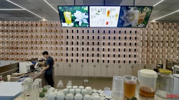 奉贵人茶业公司的奶茶杯形象墙