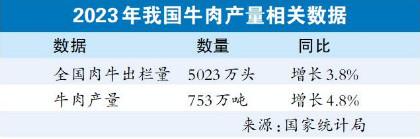 数据显示,5月份,我国CPI上涨0.3%。牛肉、羊肉和禽肉类价格分别下降12.9%、7.5%和2.9%,降幅继续扩大。业内人士分析指出,牛肉市场供应充足,叠加牛肉消费整体回落,是本轮牛肉价格走低的主要原因。一方面,肉牛存栏和进口快速增加,供应相对过剩;另一方面,牛肉消费需求不旺,与替代品消费价格下降有关。