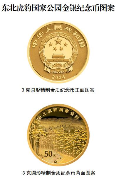 东北虎豹国家公园金银纪念币正面图案均为中华人民共和国国徽,并刊国名、年号。