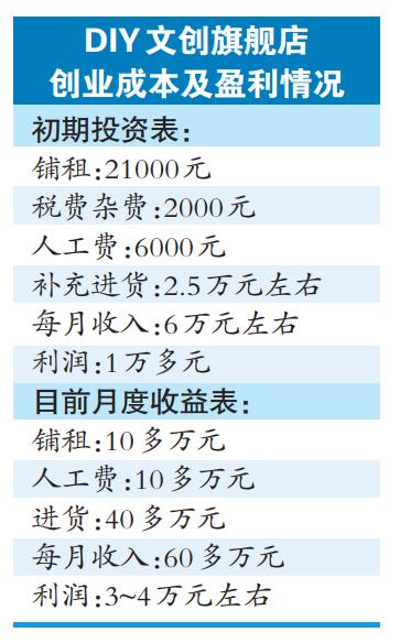 从广州美术馆辞职“下海”后,历经卖画等3次创业失败经历和一段经营管理工作,广州本地人梁爱华于2017年再次携着5万多元启动资金回到广州批发市场重新创业,开了一家DIY文创旗舰店。