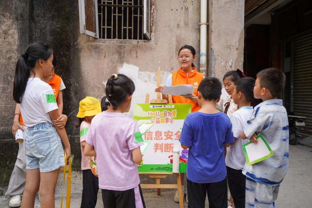 “有一只小鸡悄悄溜进了农夫的书房,她用鼠标点开了农夫的电脑,然后发生了什么呢?”近日,在广州番禺区石岗村南石张公祠里,绘本阅读指导师Kay Kay带领40余名儿童及家长共读了网络安全绘本《爱网购的小鸡》。这是“Hello音为爱公益故事会×多元梦想课堂” 项目2024年首站活动,该公益项目由广州市番禺区委网信办指导,语音直播平台Hello语音主办。据悉,今年在故事会绘本阅读陪伴活动的基础上,增加了艺术创作课程,并以“网络安全”为主题,依托社会情感学习理论,研发出了新的课程包,开展线下故事会活动。故事会形式不拘一格,生动有趣。志愿者经过培训后,带着绘本出发,无论公园里、大树下等地均可开展。