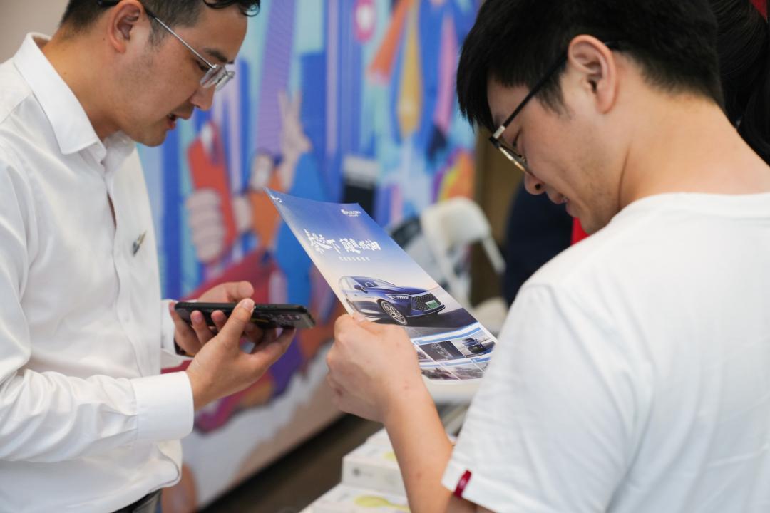 在销售人员的带领下,不少消费者现场体验了两款全新的DM-i车型。在体验了秦L DM-i之后,李先生说:“这车的驾控感真的很‘掂’。”他还表示,之前对新能源汽车的续航能力和充电设施有所顾虑,但这次活动让他对新能源汽车有了全新的认识。而宋PLUS DM-i的车内空间和内饰也有不小的吸引力。“车内饰做工精细,座椅舒适度很高,而且空间宽敞,感觉非常适合家庭使用。”小王表示,他对宋PLUS DM-i感到满意,已经与销售代表预约了深入试驾的时间。