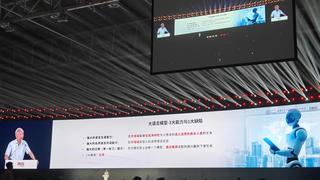 会上,张钹院士探讨了生成式人工智能的核心优势及其可能带来的挑战。目前,在大模型发展的进程中,已呈现出“三大能力”和“一大缺陷”。