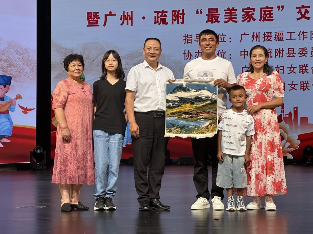 在活动中,疏附家庭给广州家庭赠送了丝巾、花帽等新疆特色礼物。疏附县妇女联合会则为广州市妇女联合会送上了一副精美的挂毯,象征着两地深厚的友谊。