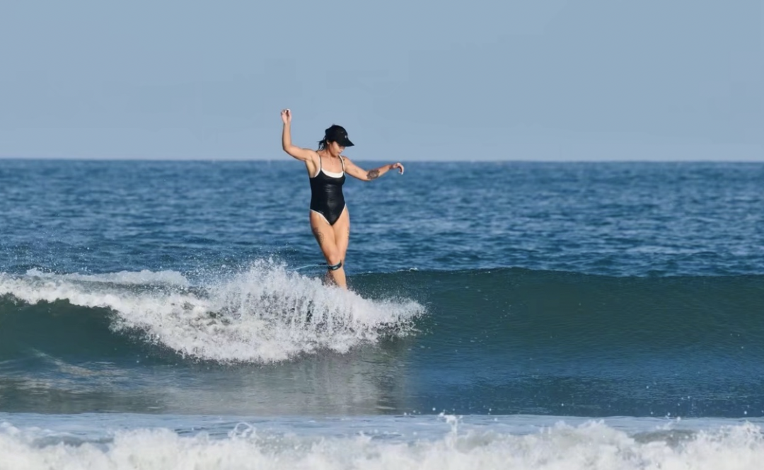 正值旺季的惠东海边,除了划船、海钓等常规娱乐外,滑翔伞、冲浪等小众运动兴起,吸引了不少大城市的年轻人成为“县漂”,从事运动教练等新型职业。拉普在惠州生活多年,偶然在双月湾接触冲浪、爱上冲浪。2019年底,拉普开出一家自己的冲浪俱乐部——OUTSIDE冲浪俱乐部。但由于经验不足和忽视推广,不到一年就濒临歇业。重新规划后,拉普决定将生意重心向线上倾斜,开辟第二主场。