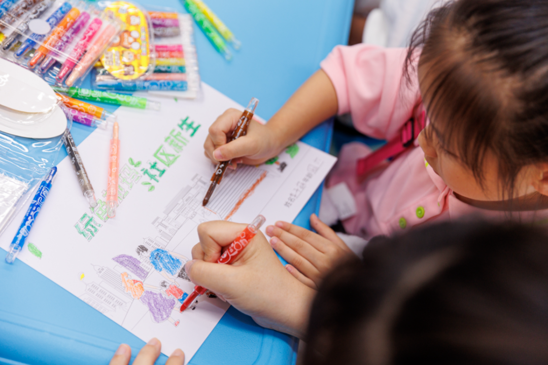 课堂上,小朋友们以手中的彩色画笔,发挥无限想象力,描绘出心中最美的口袋公园,每一幅作品都充满了对绿色社区的无限憧憬。课堂后,孩子们以“新生大使”的身份,学以致用向现场的大朋友们开启可持续倡议行,介绍“绿色加玛 社区新生”计划,号召他们参加包装回收行动,支持包装循环,一起助力社区新生。在“大使”们的带动下,现场活动推向了高潮,大朋友们纷纷将手中的废弃塑料瓶子、包装袋子投入到回收桶中,让废弃包装开启新生之旅。