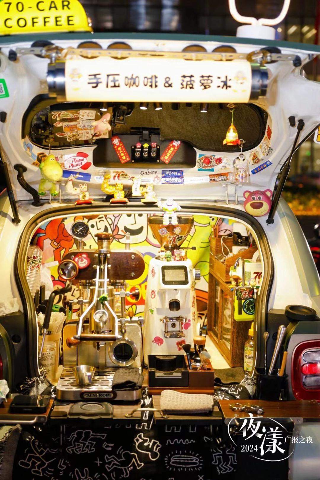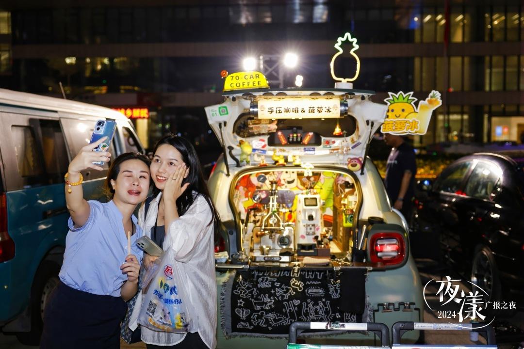在“广府老字号展区”,越秀集团携旗下皇上皇、风行乳业、五羊雪糕、趣香、东川新街市5大品牌“组团”亮相,阵容强大、颇为吸睛。皇上皇、风行乳业皆有“好礼”送市民;五羊雪糕车以其潮酷的设计C位出摊,让市民眼前一亮,90后王宁特别拍照打卡粤式经典;趣香带来最新的广式月饼和精美礼品;东川新街市带来超低特惠,让应季养生直达next level。网红感十足的,莫过于麦咖啡小黄车和信义车队的车尾厢集市。当晚,游客在麦咖啡小黄车任意两杯饮品即可DIY咖啡豆手链,戴着咖啡豆手链,手握饮品,吹着晚风,“city感”满满。在车尾厢集市,游客能“淘”来各种手工艺品和玩偶,逛累了的游客则品尝起鸡蛋仔、烤肠、章鱼小丸子等小吃。