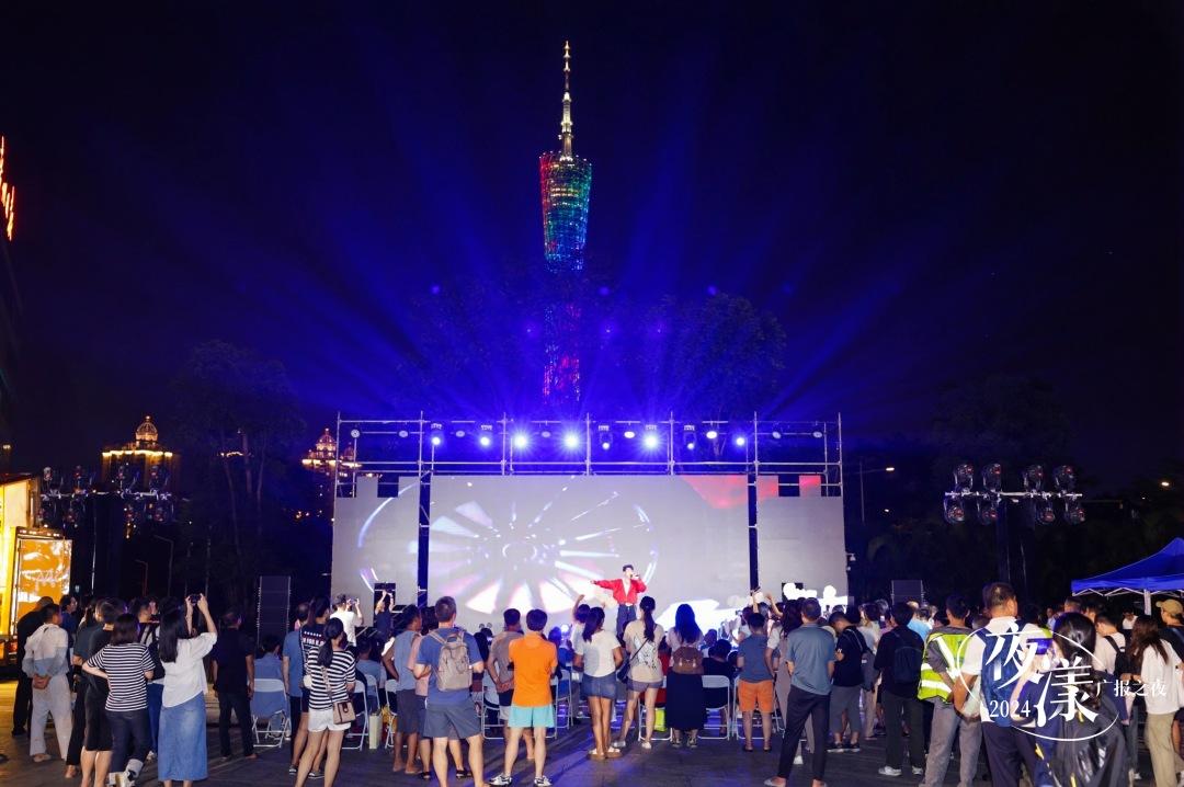 8月30日晚,在广州市商务局和广州市文化广电旅游局指导下,由广州日报报业集团(广州日报社)主办的Young城Yeah市之2024夜·漾“广报之夜”活动在广报中心北广场举行。启动仪式上发布了多组夜间消费数据、“广州夜间经济高质量发展榜单”以及主题歌单等,同期举行的“夜·漾”音乐会与美好生活市集更是吸引无数拥趸前来。