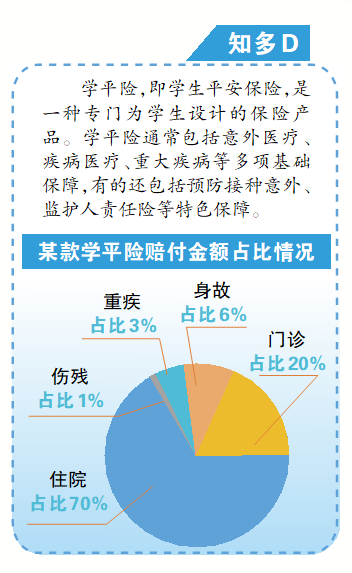 记者了解到,学平险属于交一年、保一年的短期险,涵盖幼儿园小朋友和在校生群体,但保障范围不仅仅局限于学校。“孩子在上学放学的路上遇到的风险,也在保障范围内。”一位保险代理人告诉记者,就算是周末家庭出去玩出现意外损伤,也可以通过学平险给孩子进行医疗费用报销。