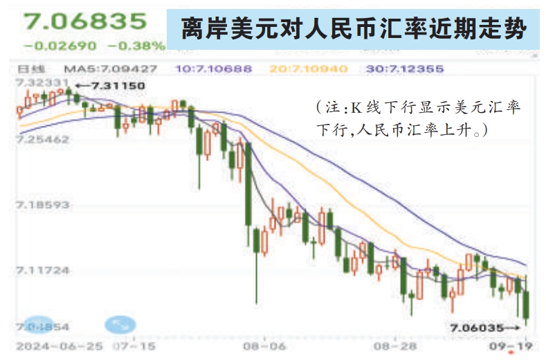 9月19日,人民币对美元汇率午后迎来明显反弹,连续升破7.10、7.09、7.08和7.07关口。截至发稿,在岸人民币对美元汇率报7.0638,日内上涨超400点。