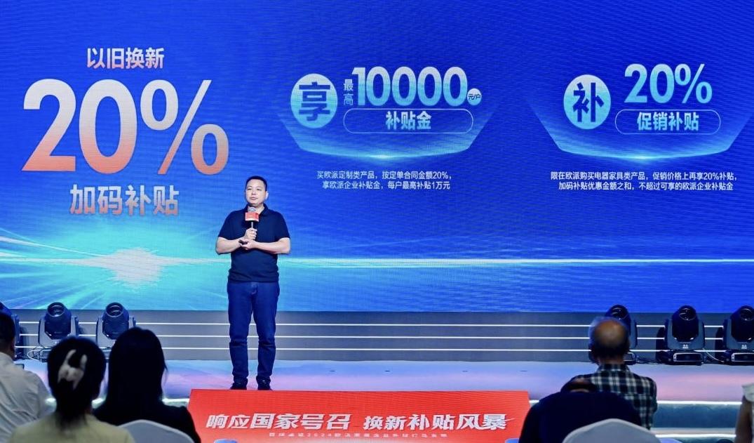 发布会上,欧派集团总裁助理张秀珠从国家政策、消费者洞察和行业发展等维度进行消费品以旧换新政策解读,并结合2024欧派家居企业补贴行动,突出欧派在“以旧换新”行动中的重要作用。他认为,欧派“以旧换新”行动是顺应时代的必然选择。它不是单独割裂的,而是基于欧派过往成就的深化和延续,是抓住存量机遇下的深刻布局。