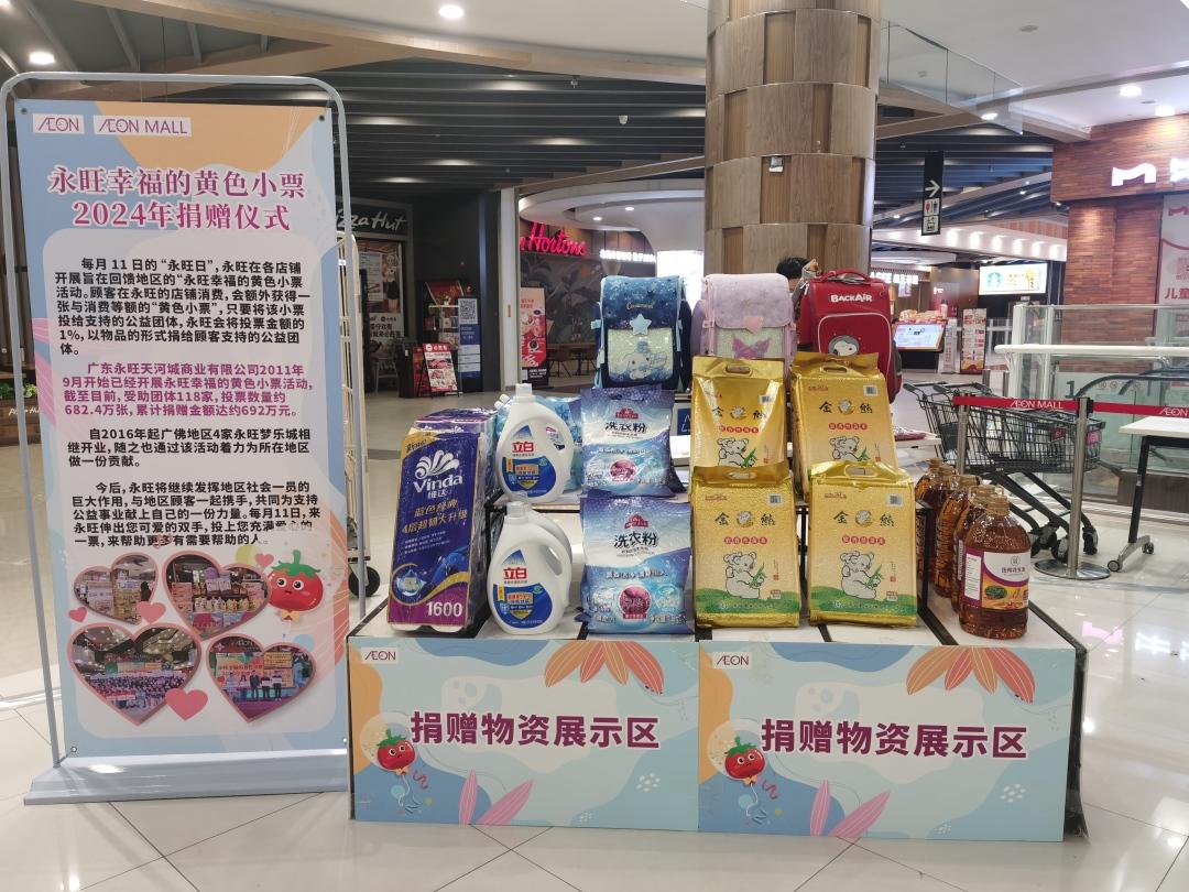 永旺开展的“幸福的黄色小票”公益活动,在广东地区已经坚持了13年,从2011年到2024年这13年间永旺累计捐助价值约692万元的爱心物资,这些爱心物资源源不断地通过社会福利、环境教育、社区建设、传统文化振兴等社会公益团体,以开展系列帮扶活动的形式,送到有需要帮助的人士手上。