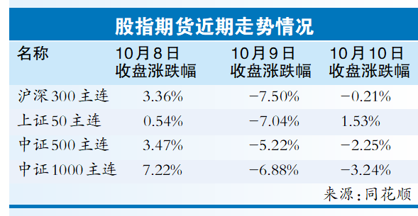 记者注意到,近期股指期货和股指期权合约价格波动较大,为控制风险,已有期货公司提高合约的交易保证金标准。10月9日,民生期货对外发布通知称,经公司研究决定,自2024年10月9日(周三)收盘结算时起,股指期货IH、IF、IC、IM合约的交易保证金标准由12%调整为14%,股指期权IO、HO、MO合约的保证金调整系数由12%调整为14%。